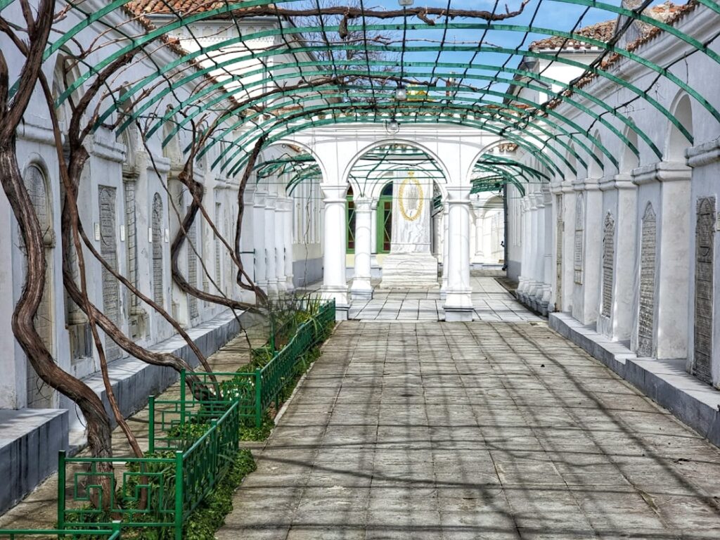 Description : hébergement dans un ancien monastère proche du centre historique, cour intérieure, règles simples (pas d’alcool, calme nocturne).