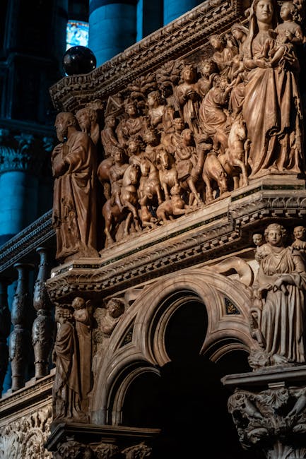 Conseil de lecture : ne vous contentez pas d’une vue d’ensemble. Accroupissez-vous (sans toucher) pour lire la profondeur des reliefs, observez les joints entre les pierres, la manière dont la lumière souligne les gravures. Prenez le temps de comparer deux panneaux proches : vous percevrez l’évolution des styles, du gothique tardif vers la Renaissance, et la façon dont chaque artiste interprète le même thème.